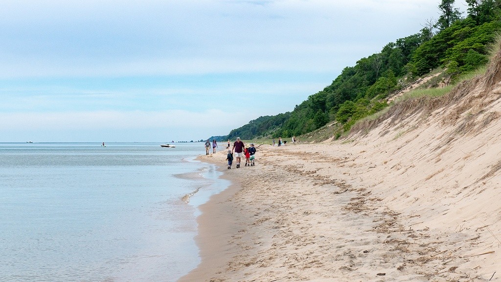Saugatuck Dunes Park Beach is a secluded strip of Lake Michigan shoreline. It is located 0.6 miles from Saugatuck Dunes State Park, which offers a picnic area, parking, and fresh water coastal dunes that are over 200 feet tall. Water quality tested as needed.
