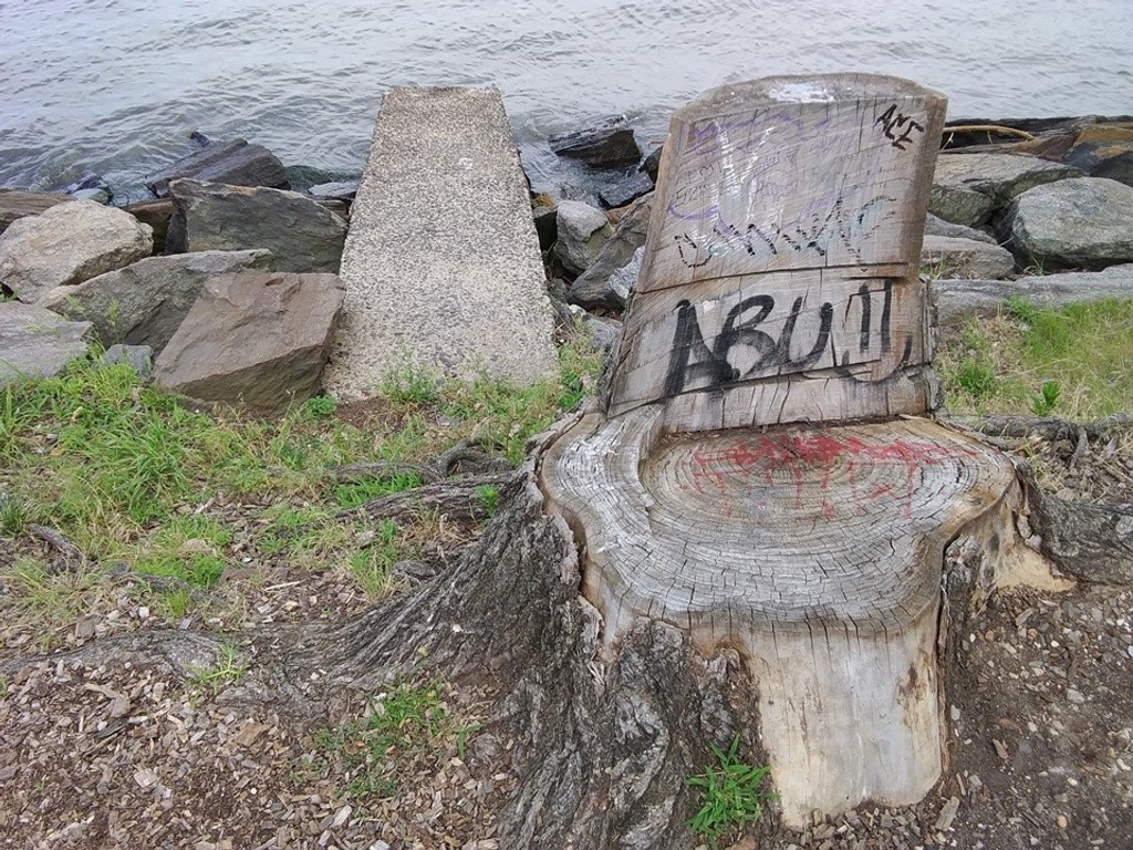 (A) its very recognizable due to the tree stump with a piece of wrought iron fence that insures it will be there for a long time. The tree stump makes a comfortable seat. Lately there's a very comfortable milk crate. Sitting on the rocks feels good when they are warm but they may abrade your swimwear..